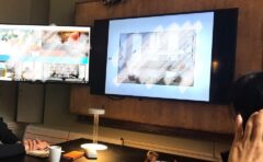 HAWORTHでの講義だったため、ランチ前には、会社の説明とショールームツアーつき。オフィス家具たちのデザインと最新のテクノロジーをたっぷりと堪能しました。巨大なタッチパネルを掌で操りながら説明する姿はまるで魔法使い。さすがハリーポッターの国😆😆